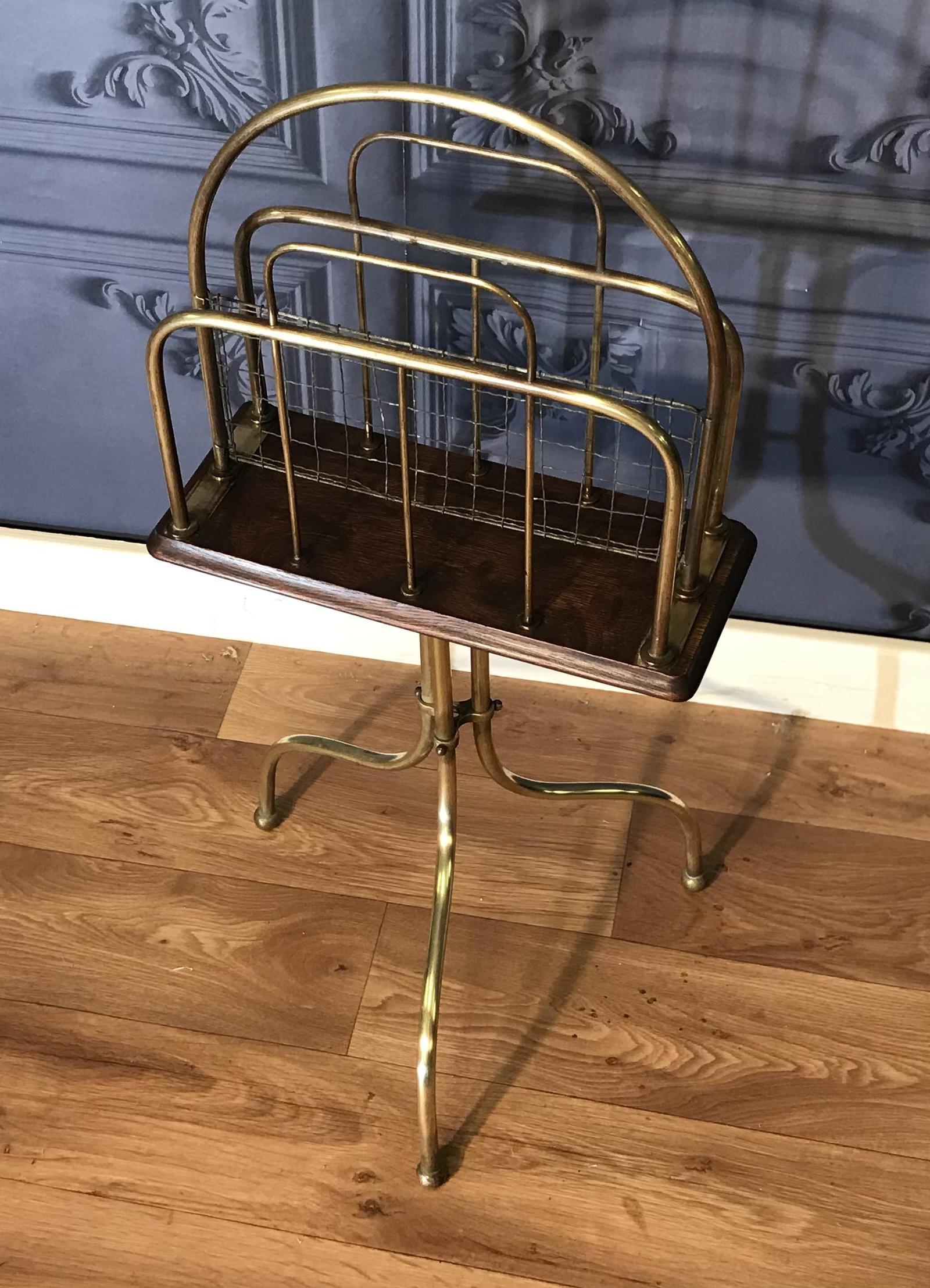 Victorian Brass & Oak Revolving Paper Rack by William Tonks