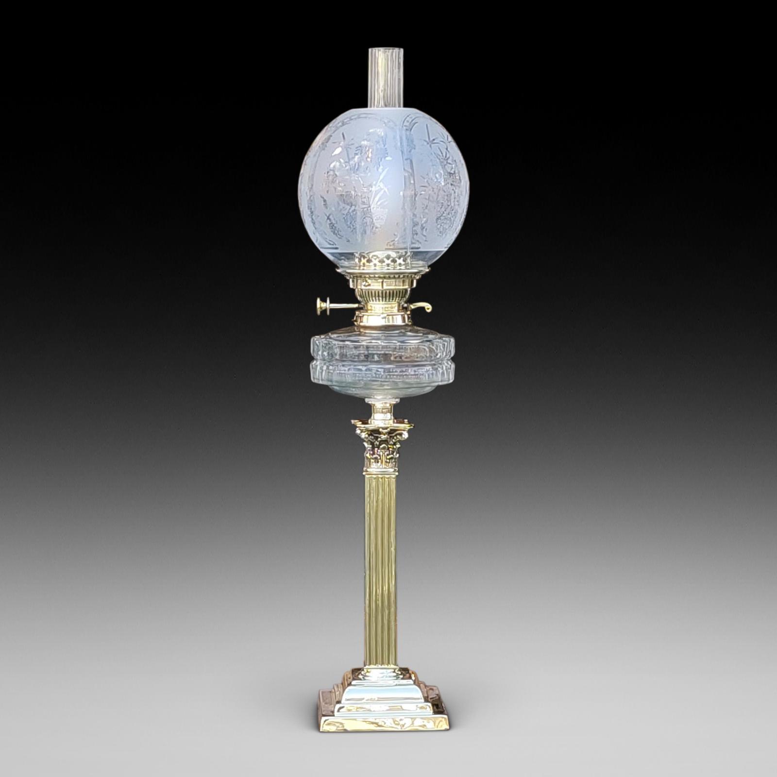 This Victorian Brass Oil Lamp by Hinks of Birmingham is located in Cheshire, United Kingdom