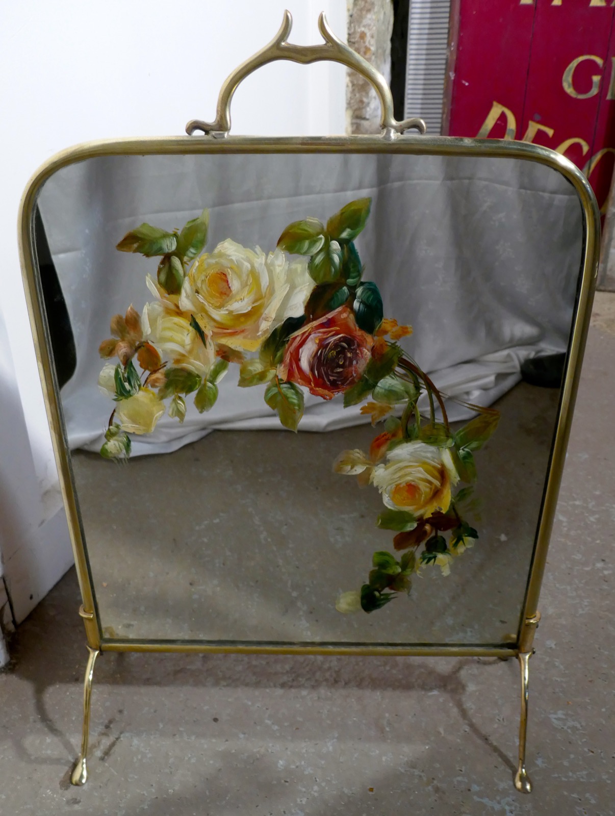 Victorian Brass & Roses Painted Mirror Fire Screen
