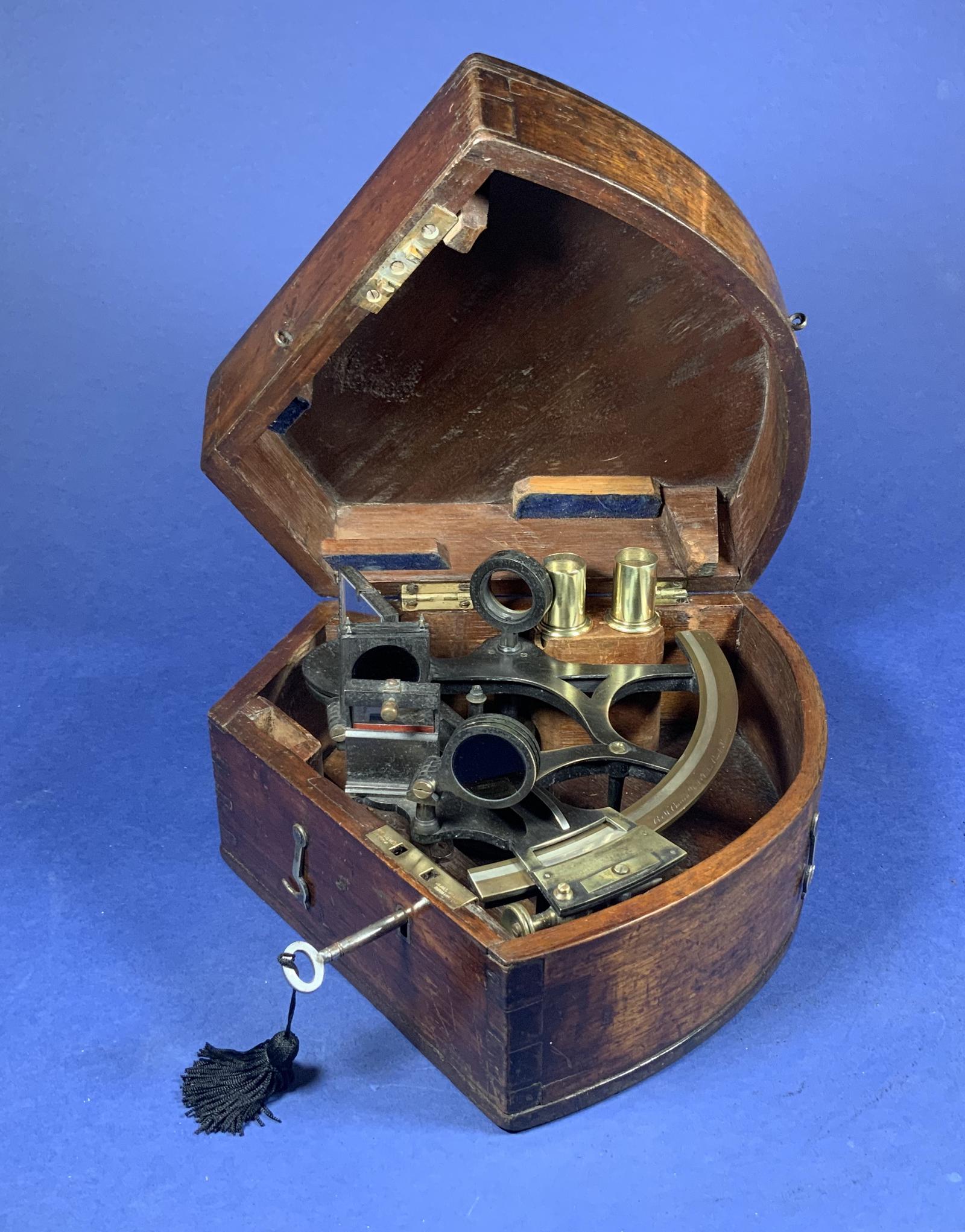Victorian Brass Sextant In It’s Original Mahogany Box.