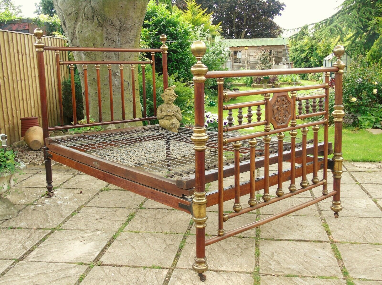 Victorian Brass & Walnut Double Bed (1 of 1)
