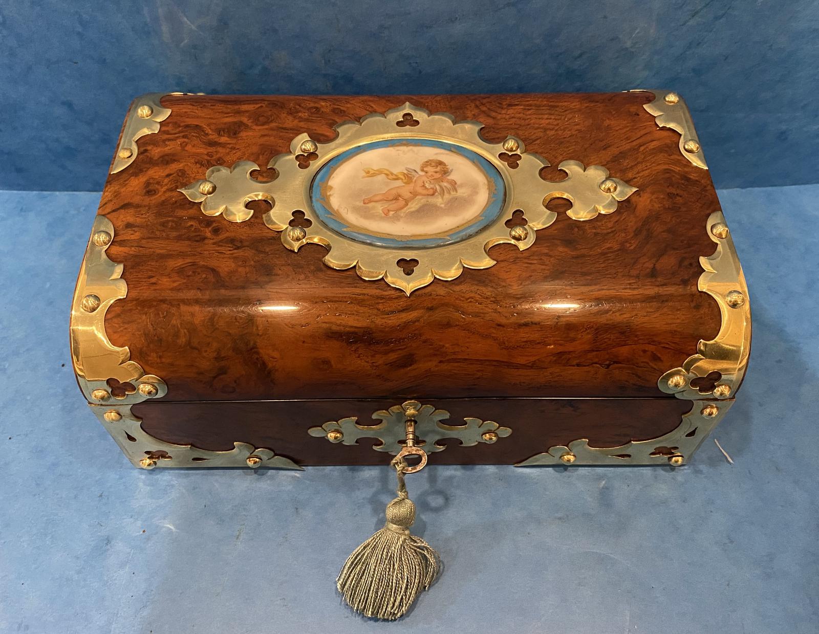 Victorian Brassbound & Brass Inlaid Walnut Jewellery Box