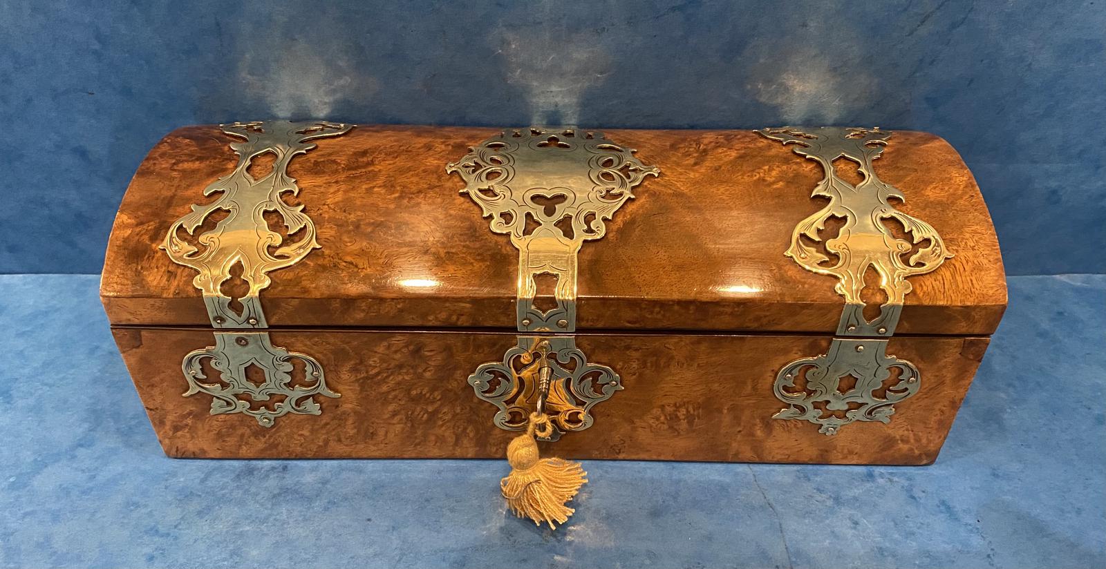 Victorian Brassbound Burr Walnut Glove Box