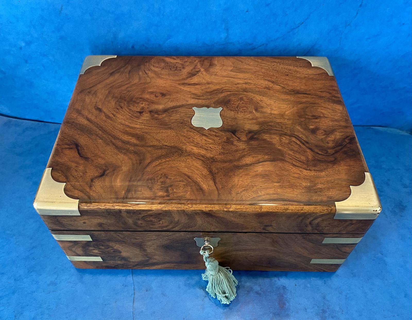 Victorian Brassbound Burr Walnut Writing Slope, Featuring Secret Drawers