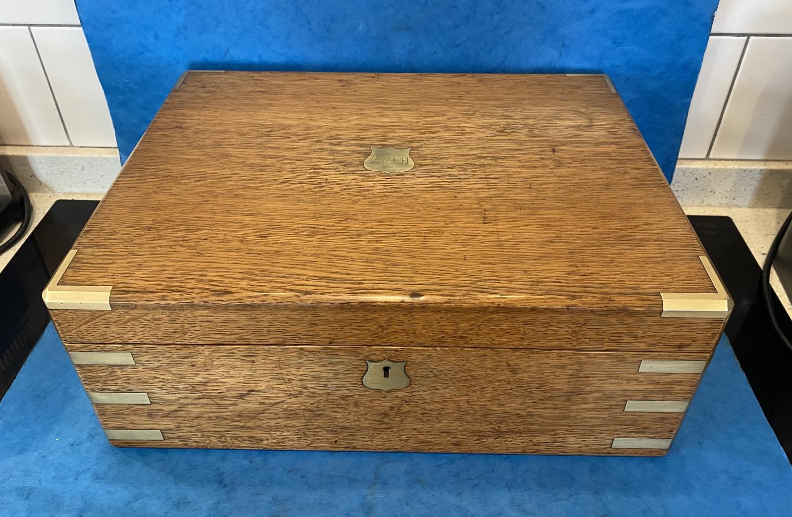 Victorian Brassbound Oak Collectors Box