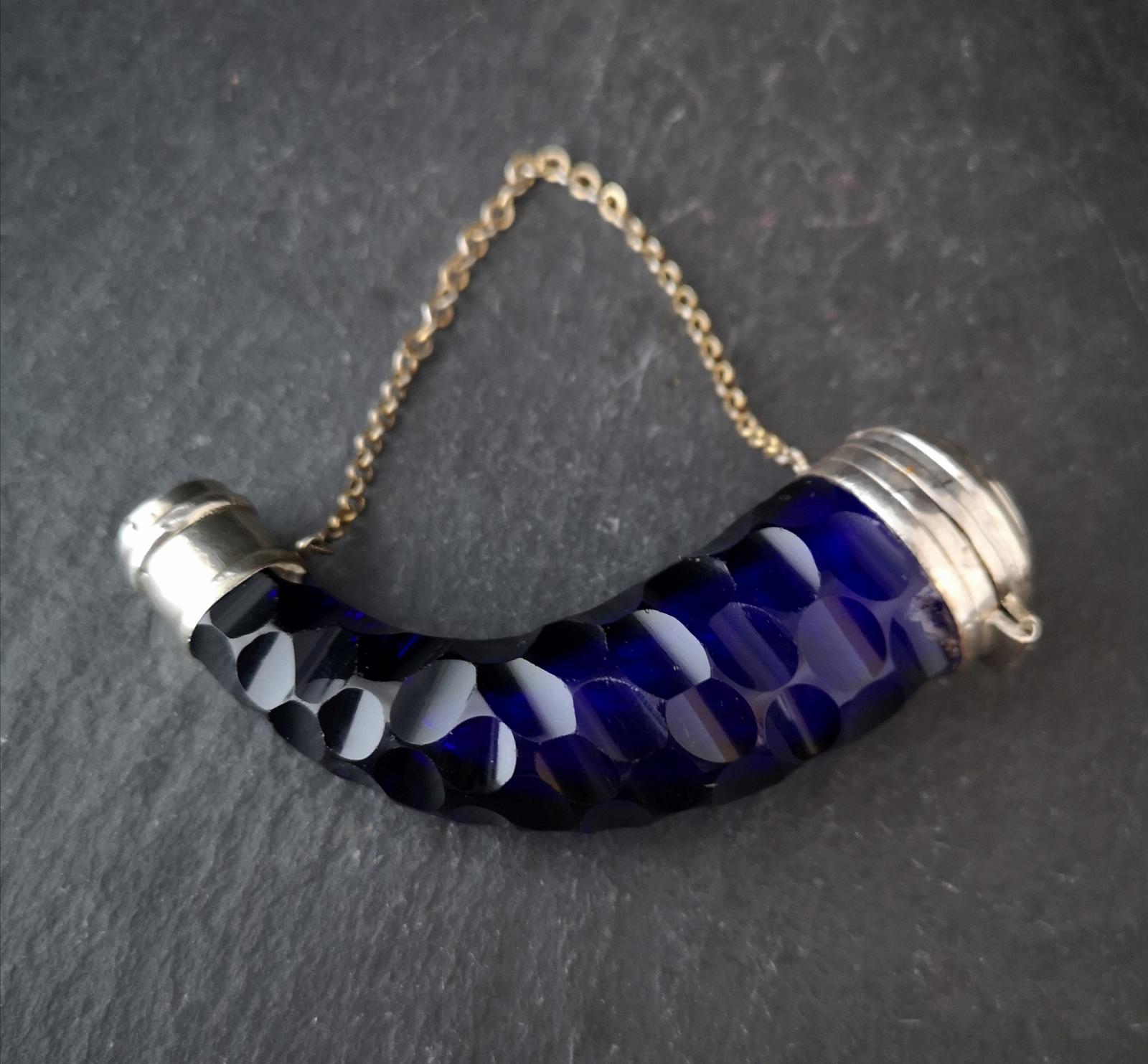 Victorian Bristol blue glass vinaigrette, powder horn