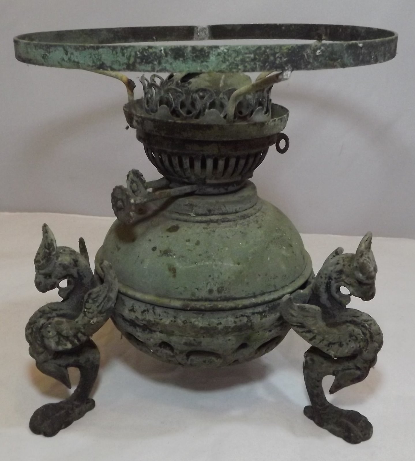 Victorian Bronze Twin Burner Oil Lamp Griffin Legs
