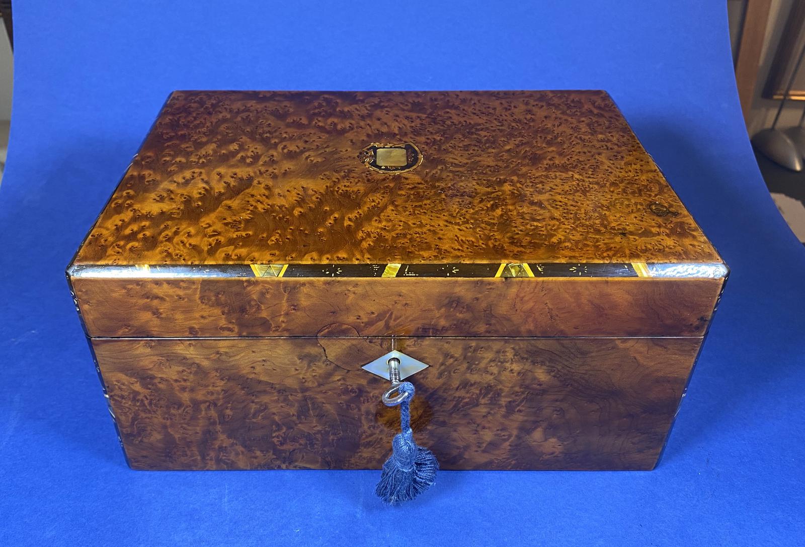 Victorian Burr Cedar Jewellery Box With Inlay.