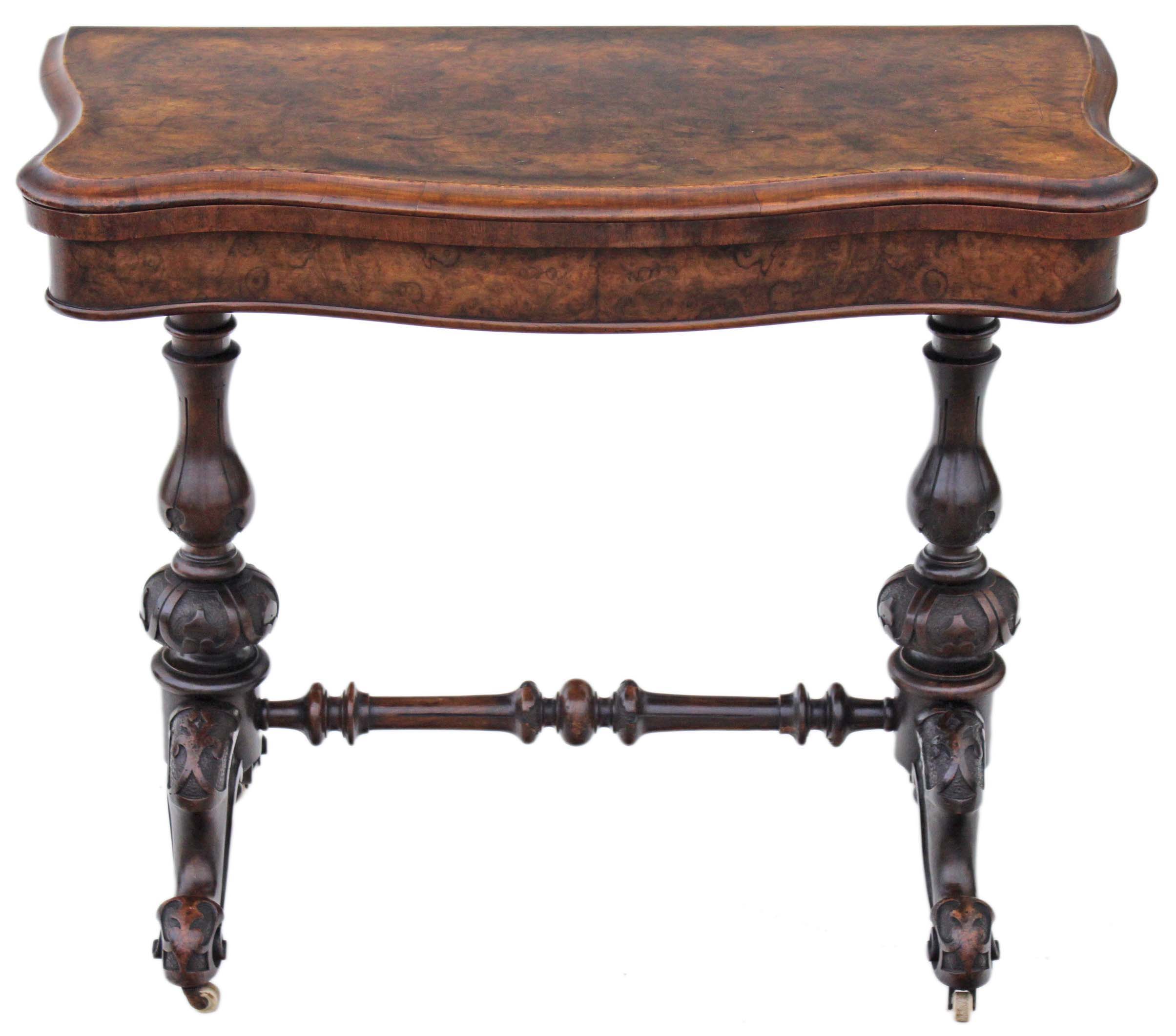 Victorian Burr Walnut 19th Century Folding Table / Card Table / Tea Table / Console Table