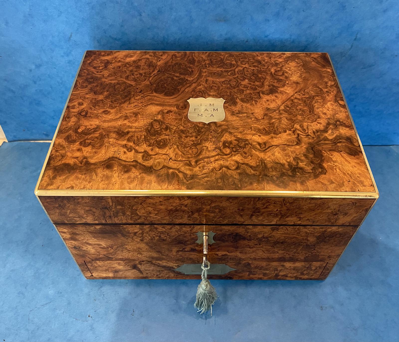 Victorian Burr Walnut Brassbound Jewellery Box