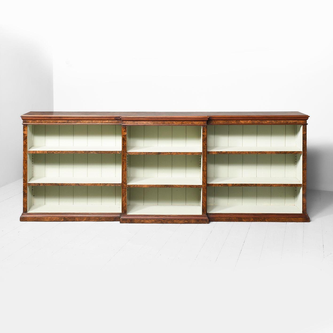 Victorian Burr Walnut Breakfront Open Bookcase (1 of 8)