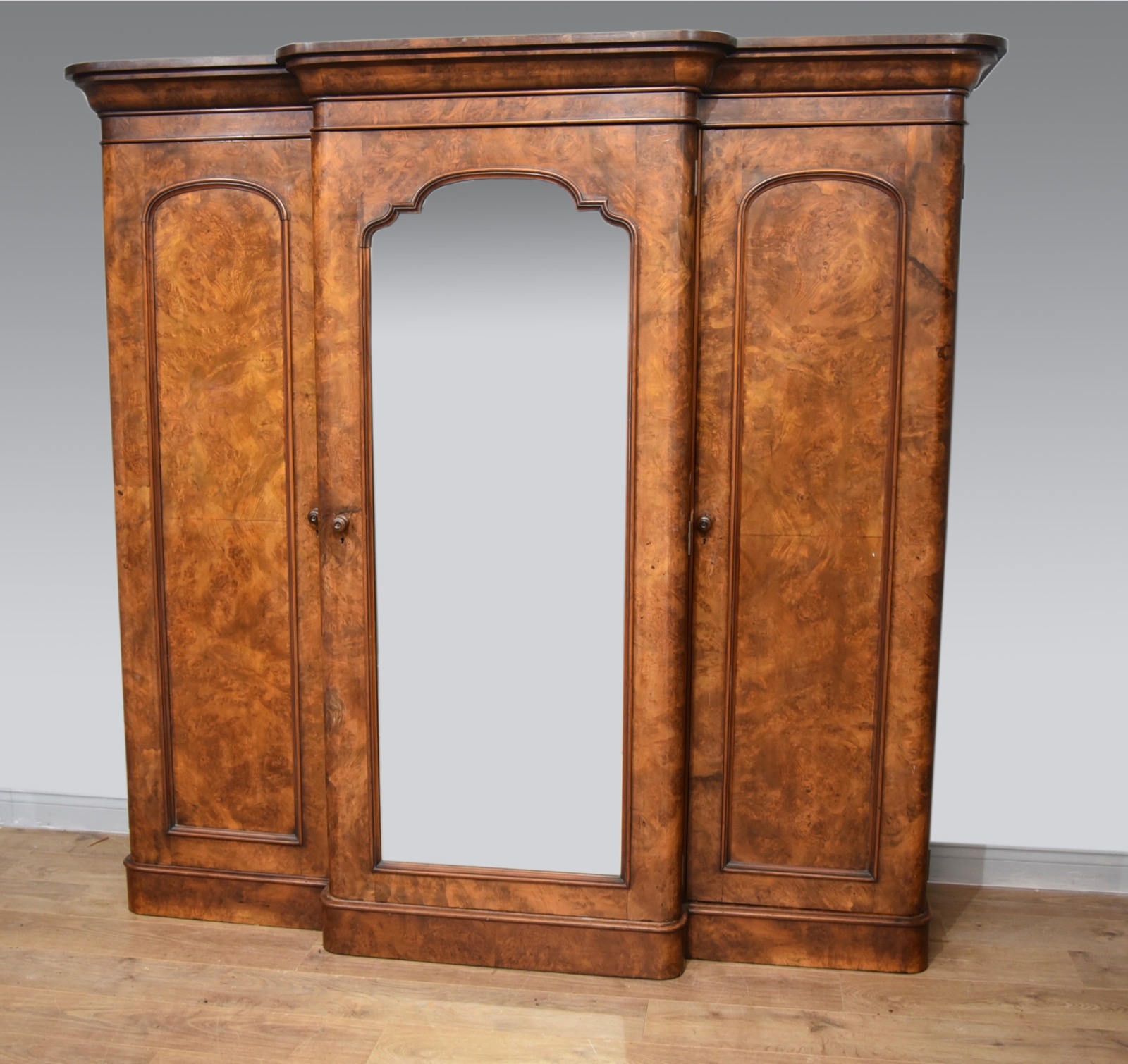 Victorian Burr Walnut Breakfront Triple Wardrobe