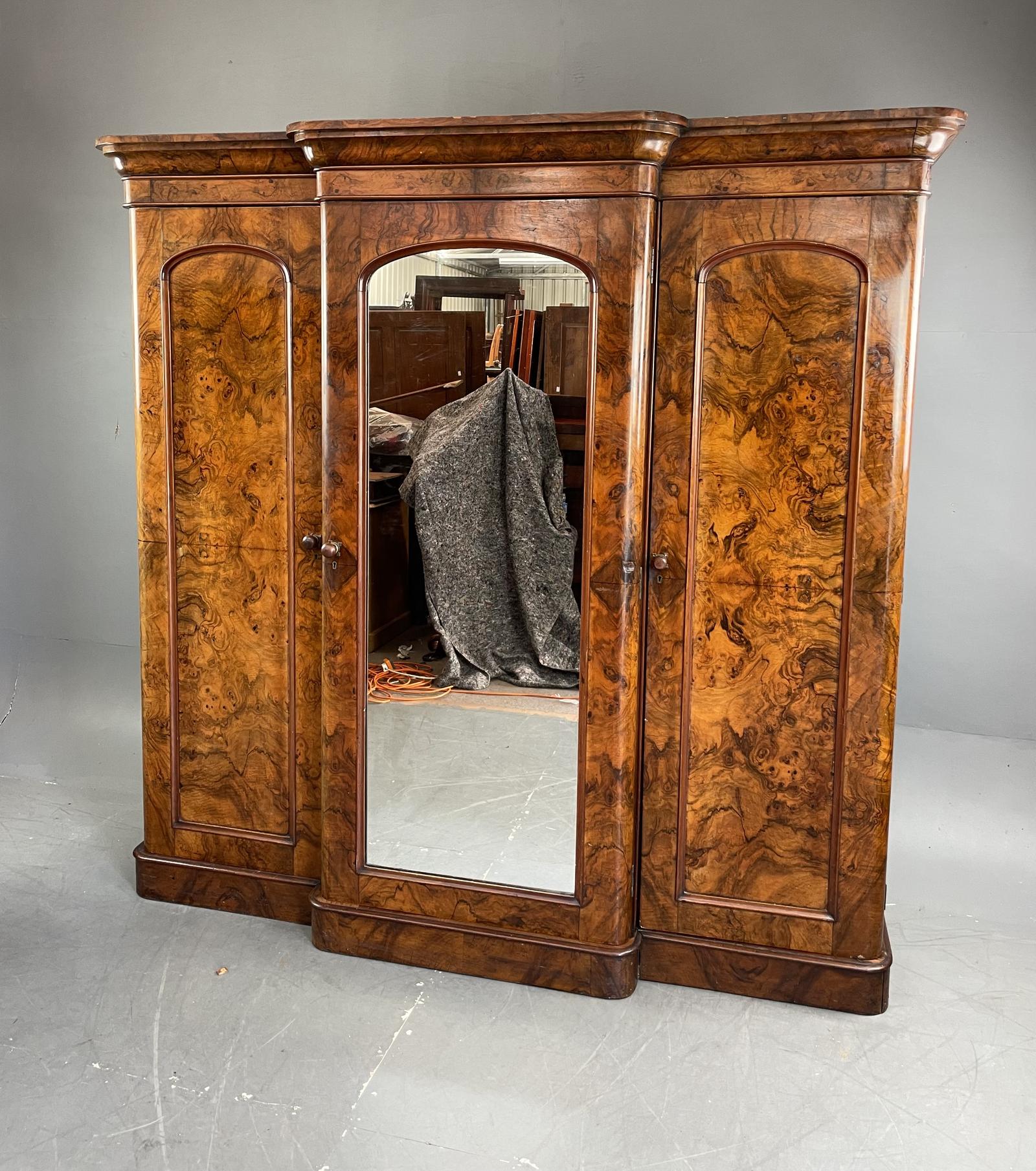 Victorian Burr Walnut Breakfront Triple Wardrobe Compactum