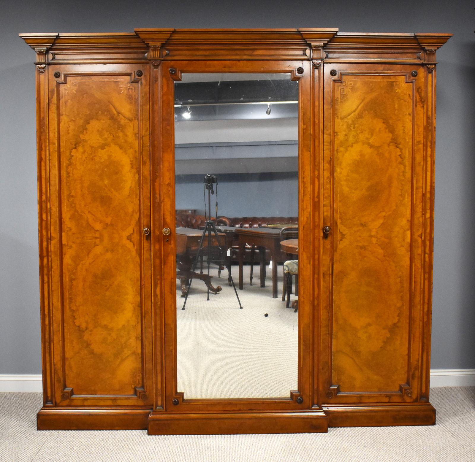 Victorian Burr Walnut Breakfront Wardrobe