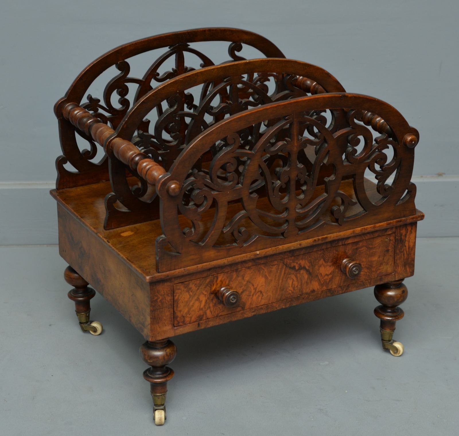 Victorian Burr Walnut Canterbury Magazine Stand / Rack