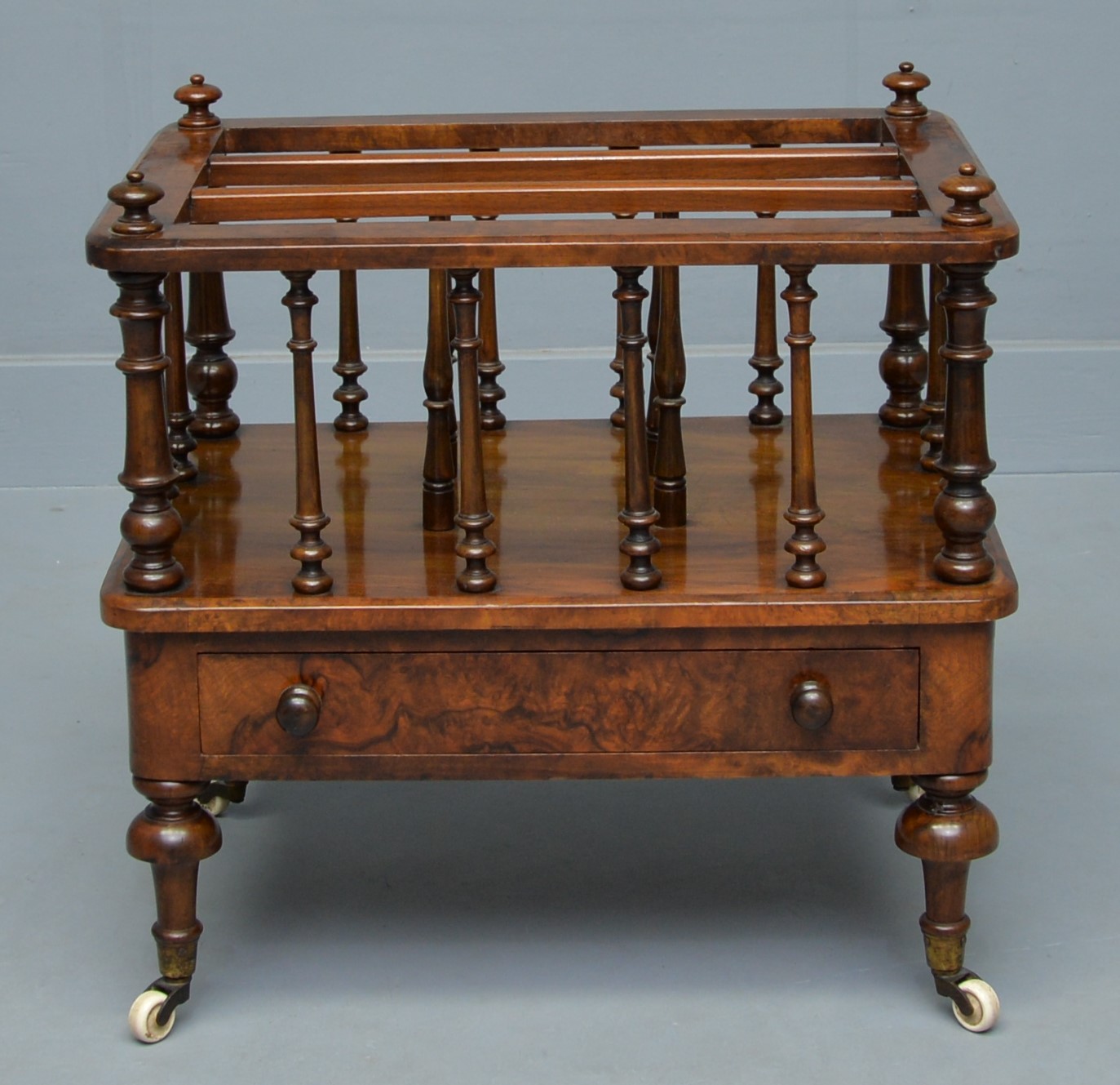 Victorian Burr-Walnut Canterbury Magazine Stand / RAck