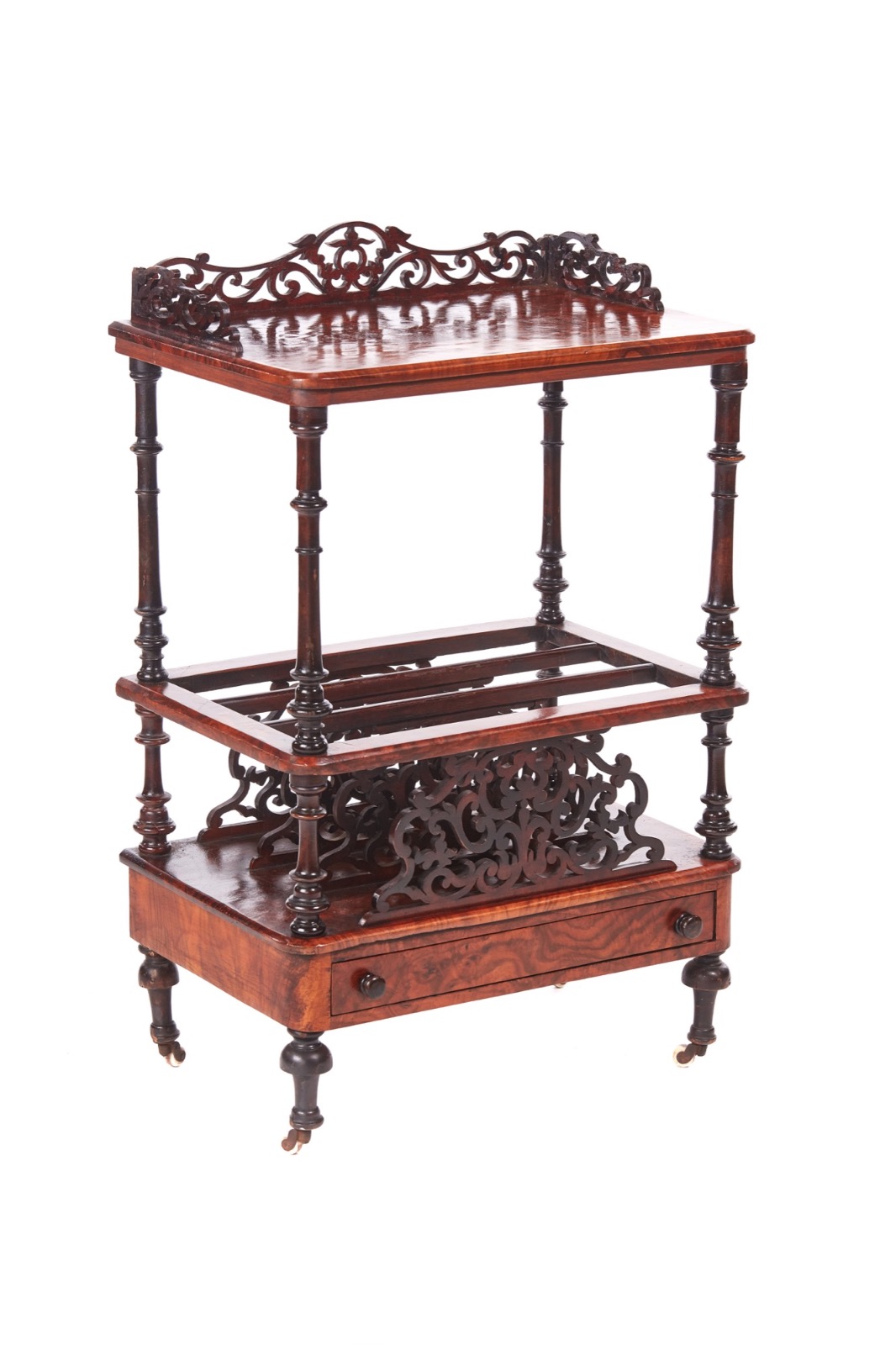 Victorian Burr Walnut Canterbury Whatnot