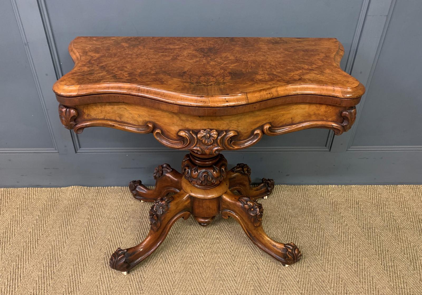 Victorian Burr Walnut Card Table c.1875 (1 of 15)
