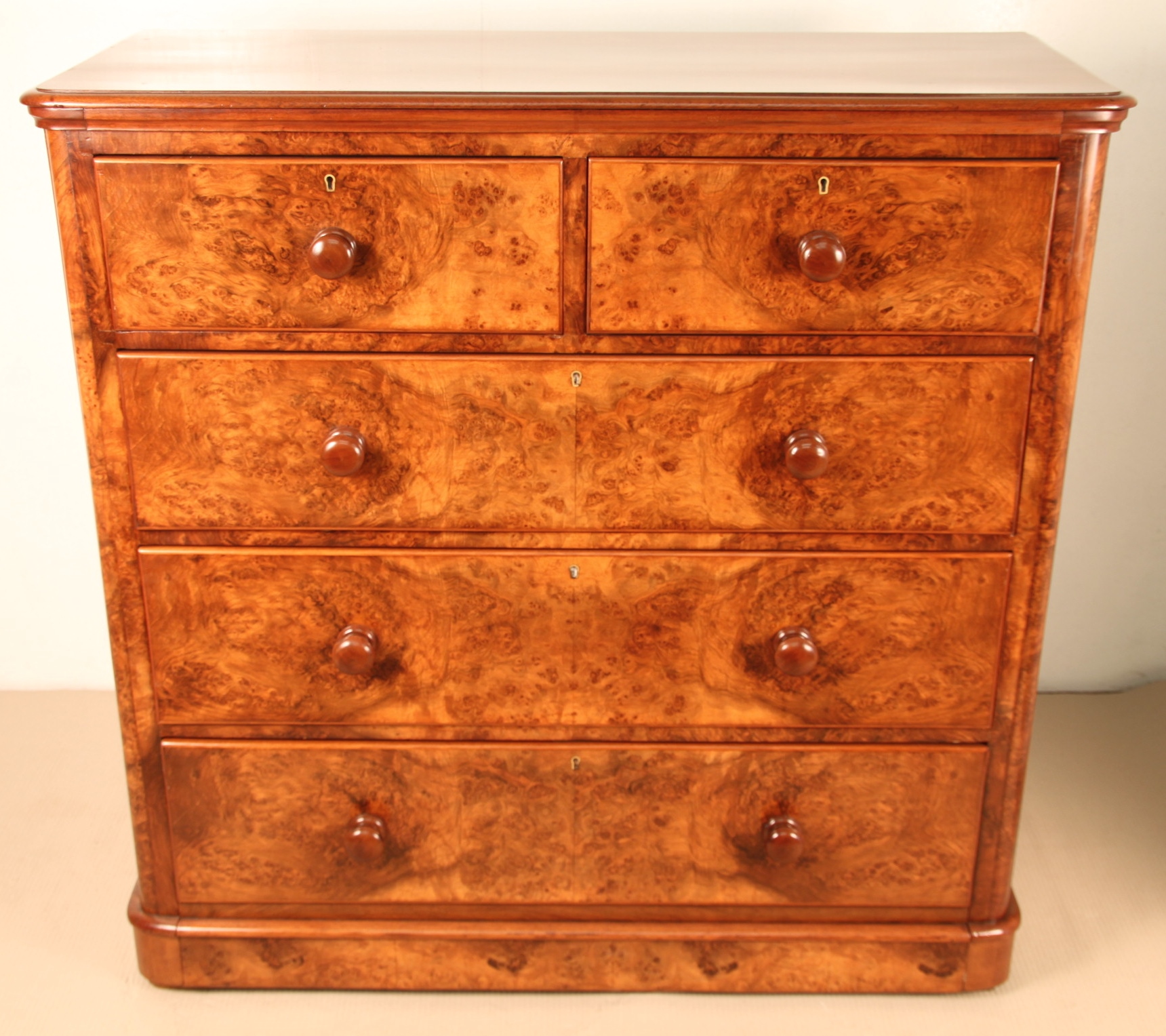 Victorian Burr Walnut Chest of Drawers c.1870 (1 of 1)