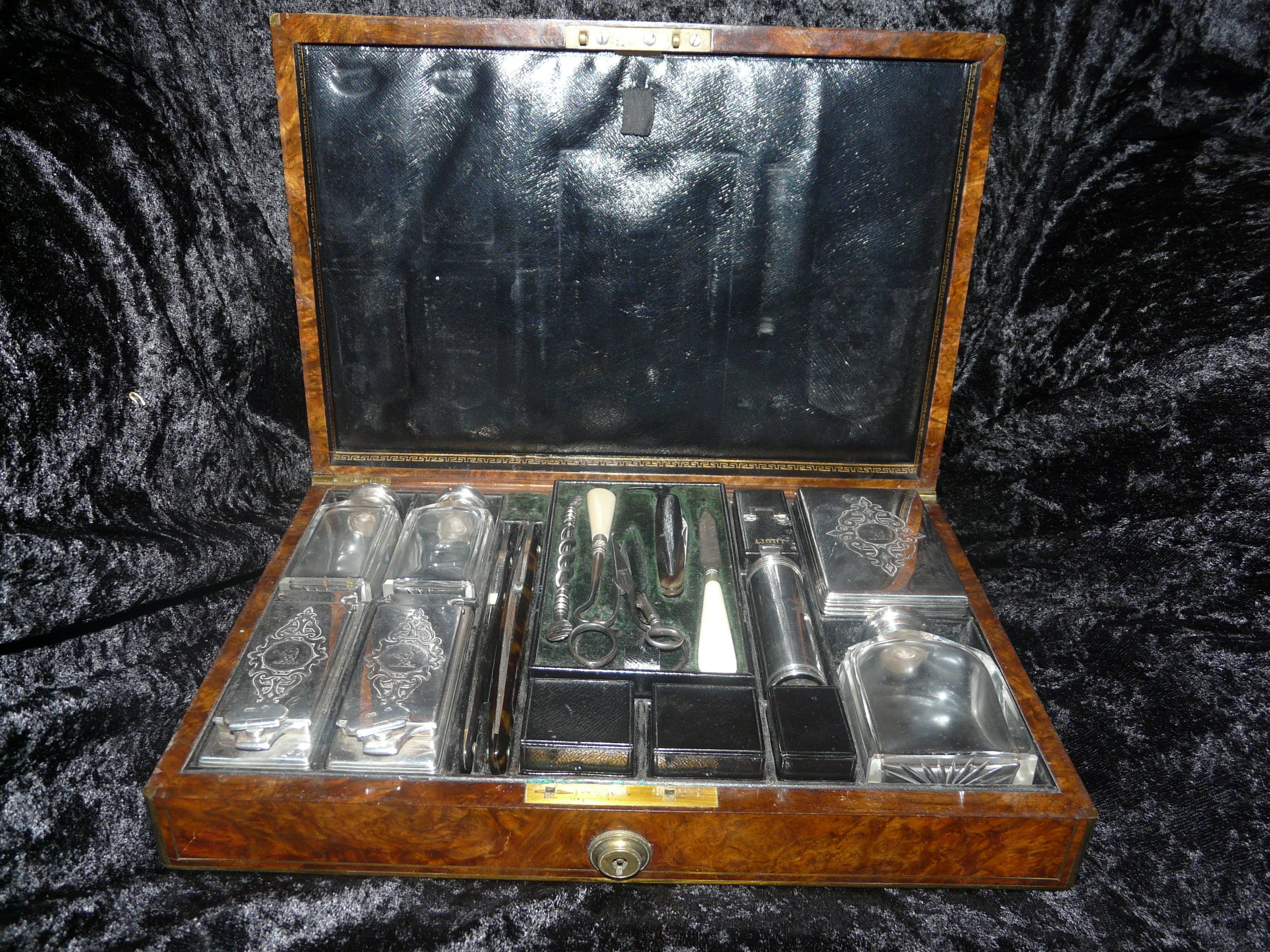 Victorian Burr Walnut Dressing Set Box with Silver Fittings