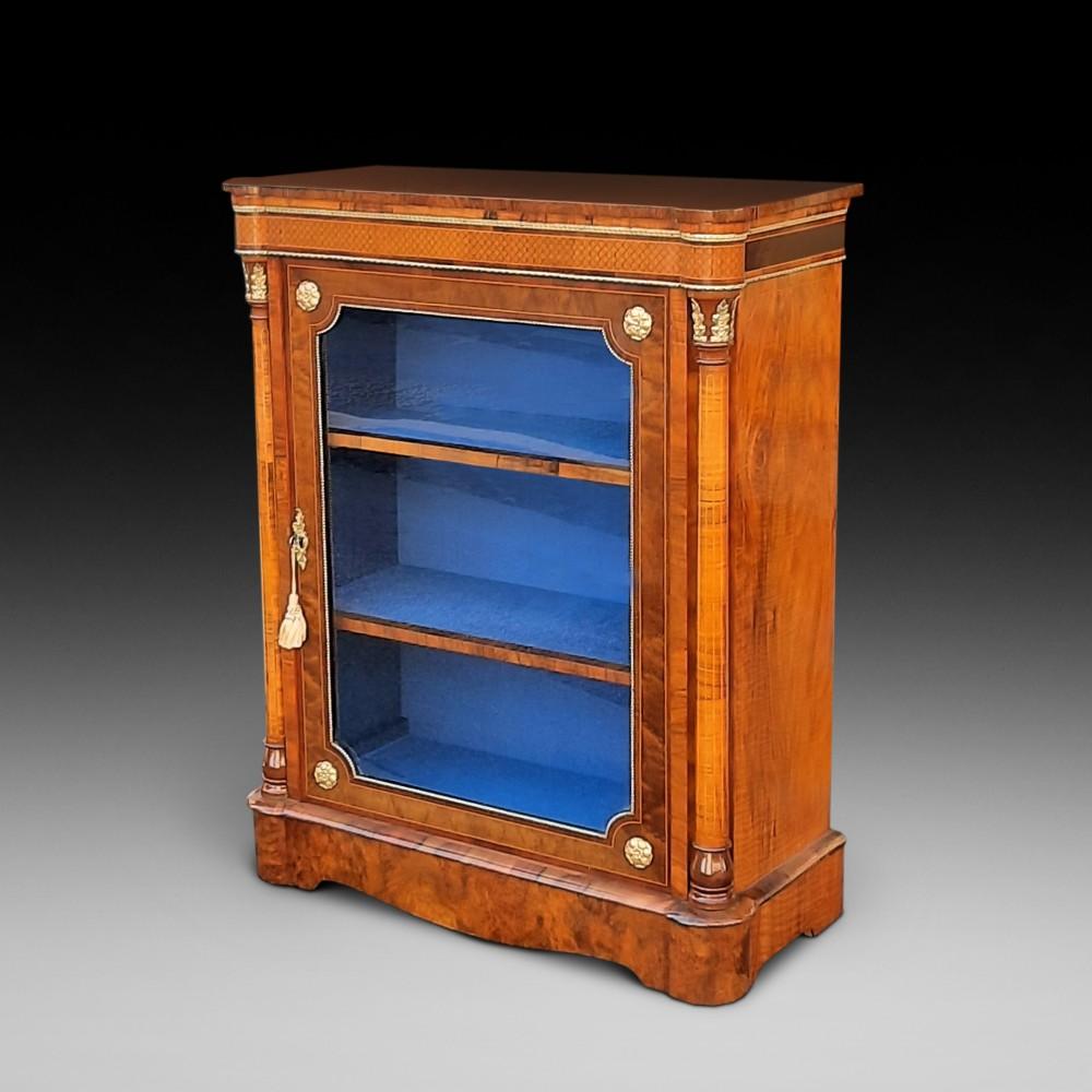 Victorian Burr Walnut Glazed Pier Cabinet