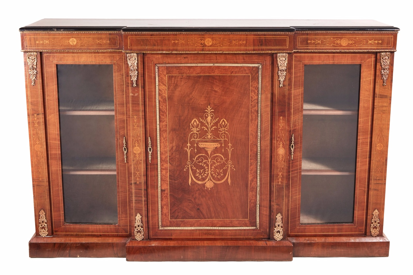 Victorian Burr Walnut Inlaid Breakfront Credenza c.1860