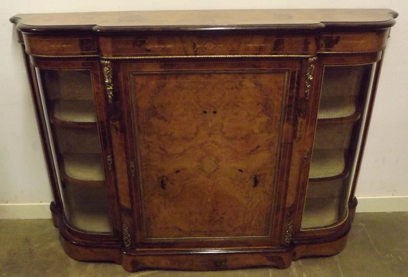 Victorian Burr Walnut Inlaid Credenza with Brass Mounts C.1860