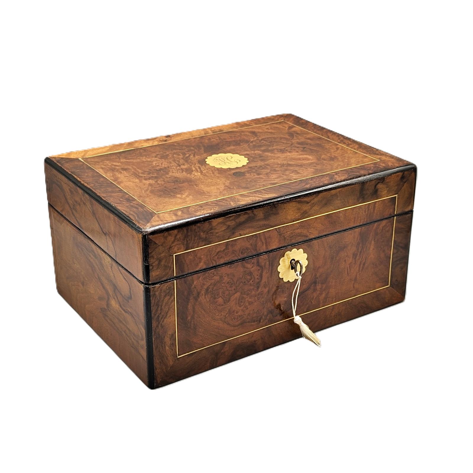 Victorian Burr Walnut & Inlaid Jewellery Box