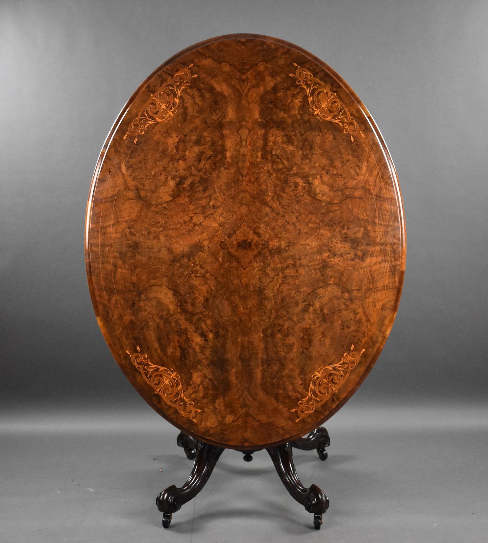Victorian Burr Walnut Inlaid Oval Loo Table