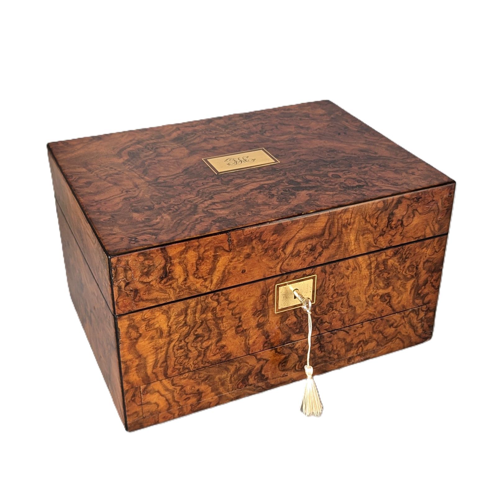 Victorian Burr Walnut Jewellery Box by Bagshaw & Sons