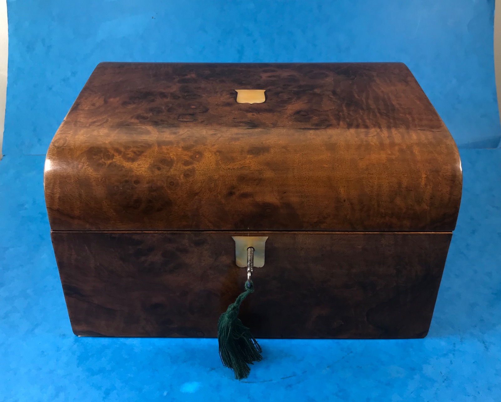 Victorian Burr Walnut Jewellery Box with a Side Drawer