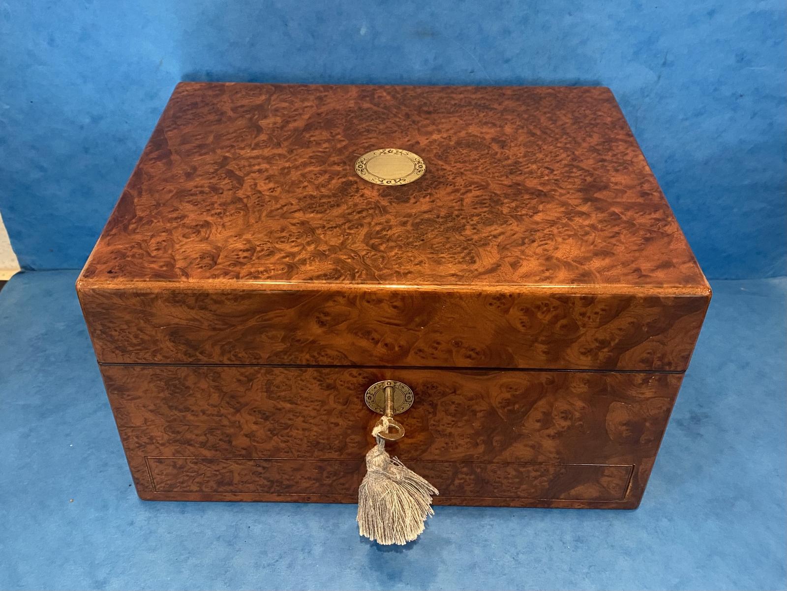 Victorian Burr Walnut Jewellery Box With Front Drawer