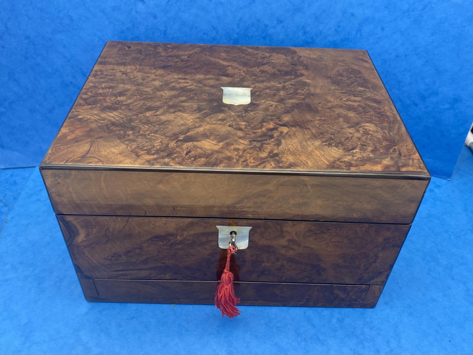 Victorian Burr Walnut Jewellery Box With Two Drawers