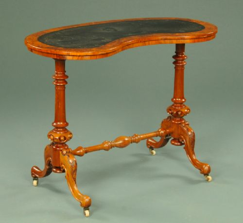 Victorian Burr Walnut Kidney Shaped Stretcher Table