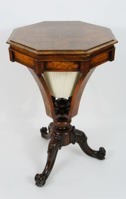 Victorian Burr Walnut Octagonal 'Trumpet Style' Work Table