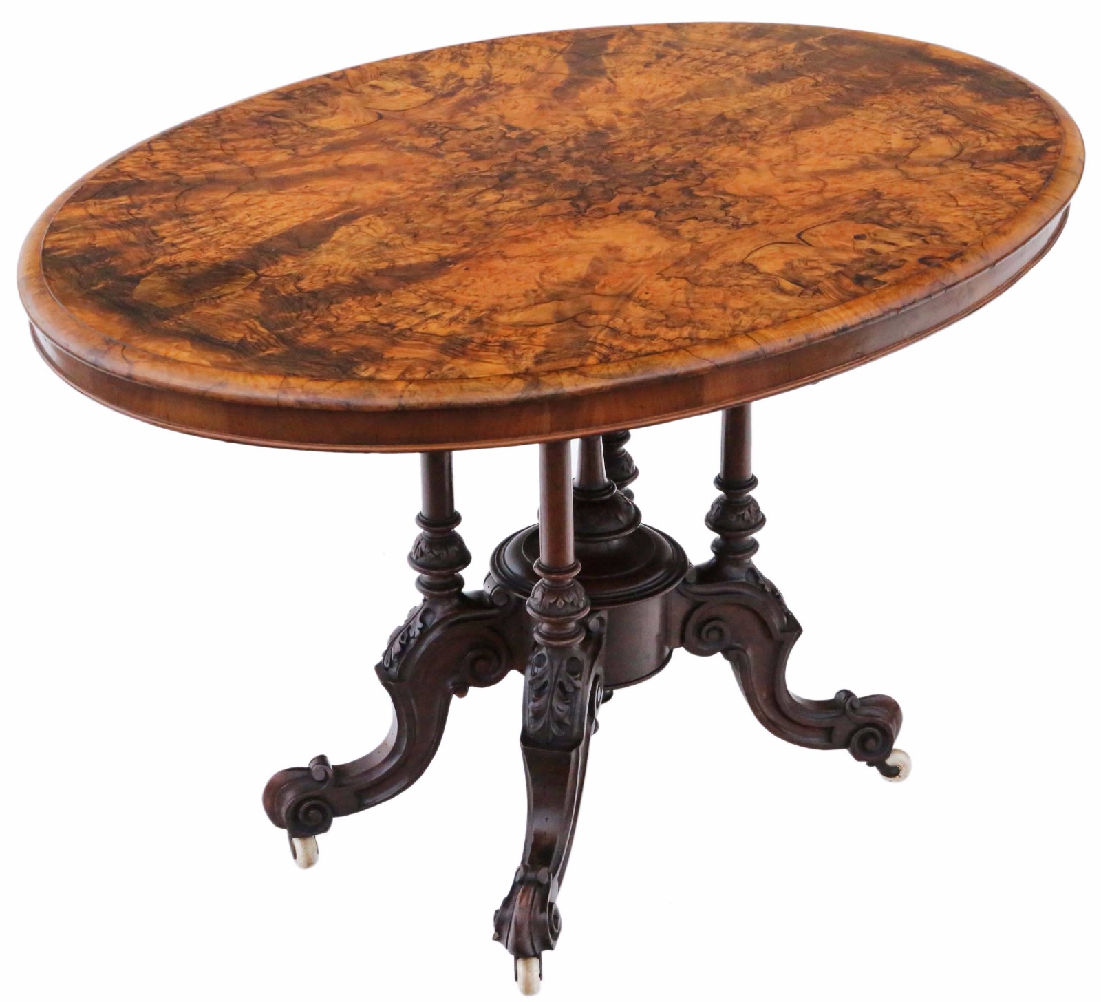 Victorian Burr Walnut Oval Breakfast Loo Table Tilt Top c.1870 (1 of 1)