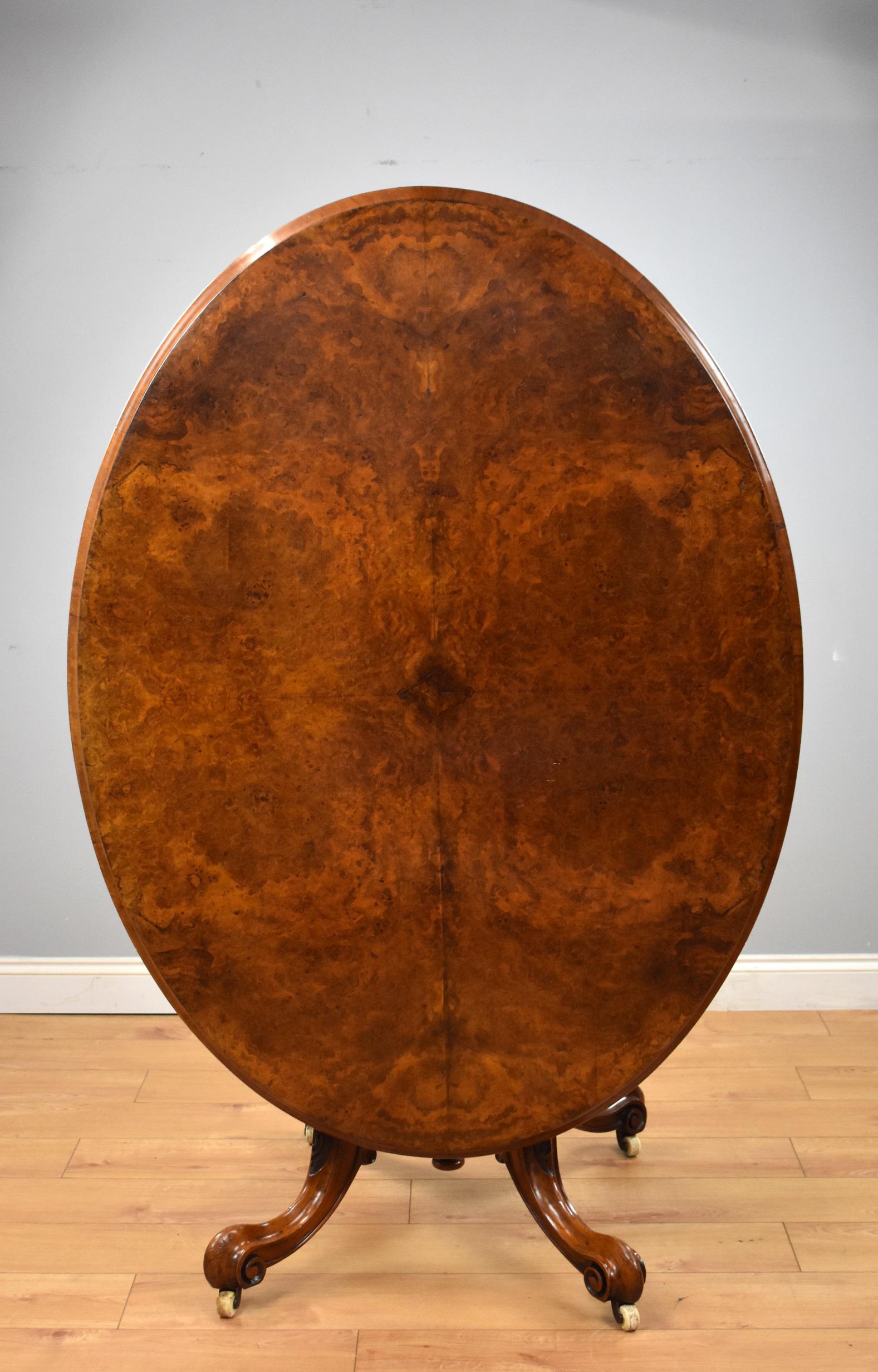 Victorian Burr Walnut Oval Tilt Top Breakfast Table