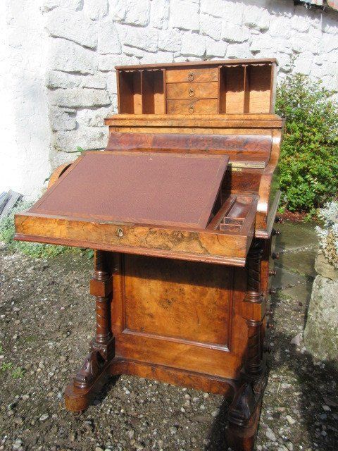 Victorian Burr Walnut Piano Top Pop Up Burr Walnut Davenport Desk