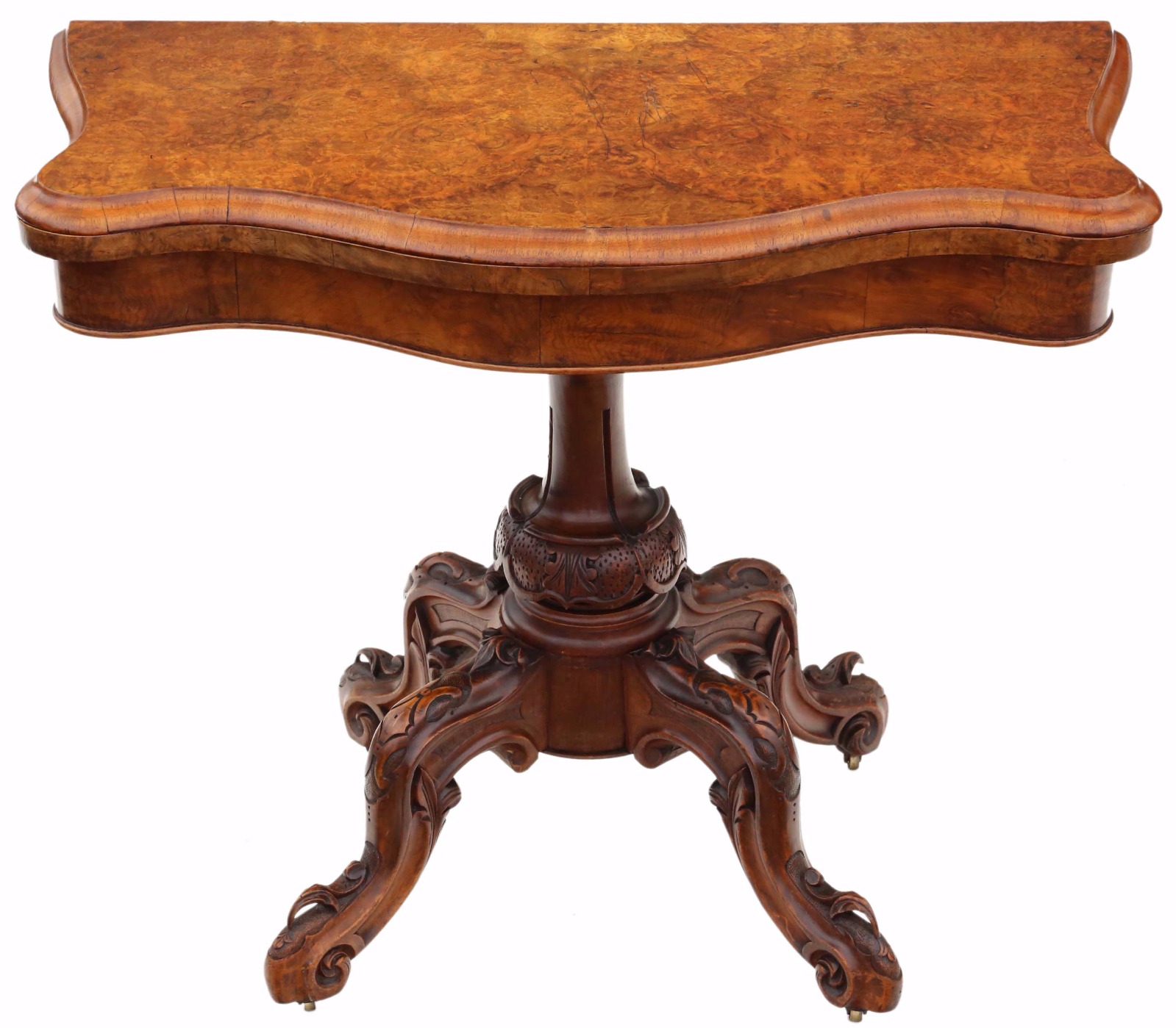 Victorian Burr Walnut Serpentine Folding Card Table C.1870 (1 of 1)