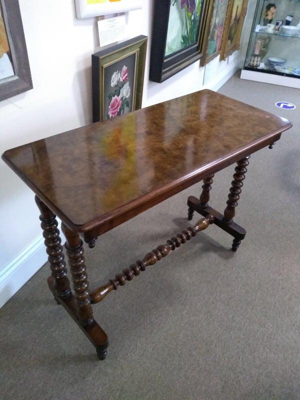 Victorian Burr Walnut Side Table with Bobbin Turned Legs
