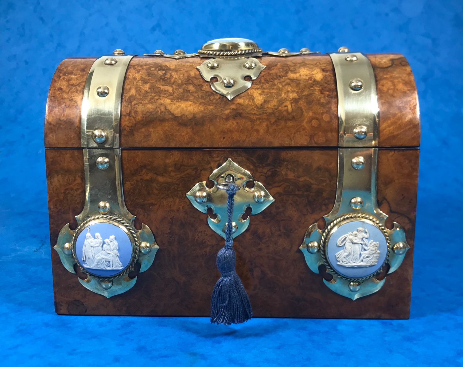 Victorian Burr Walnut Stationary Box with Wedgwood Plaques
