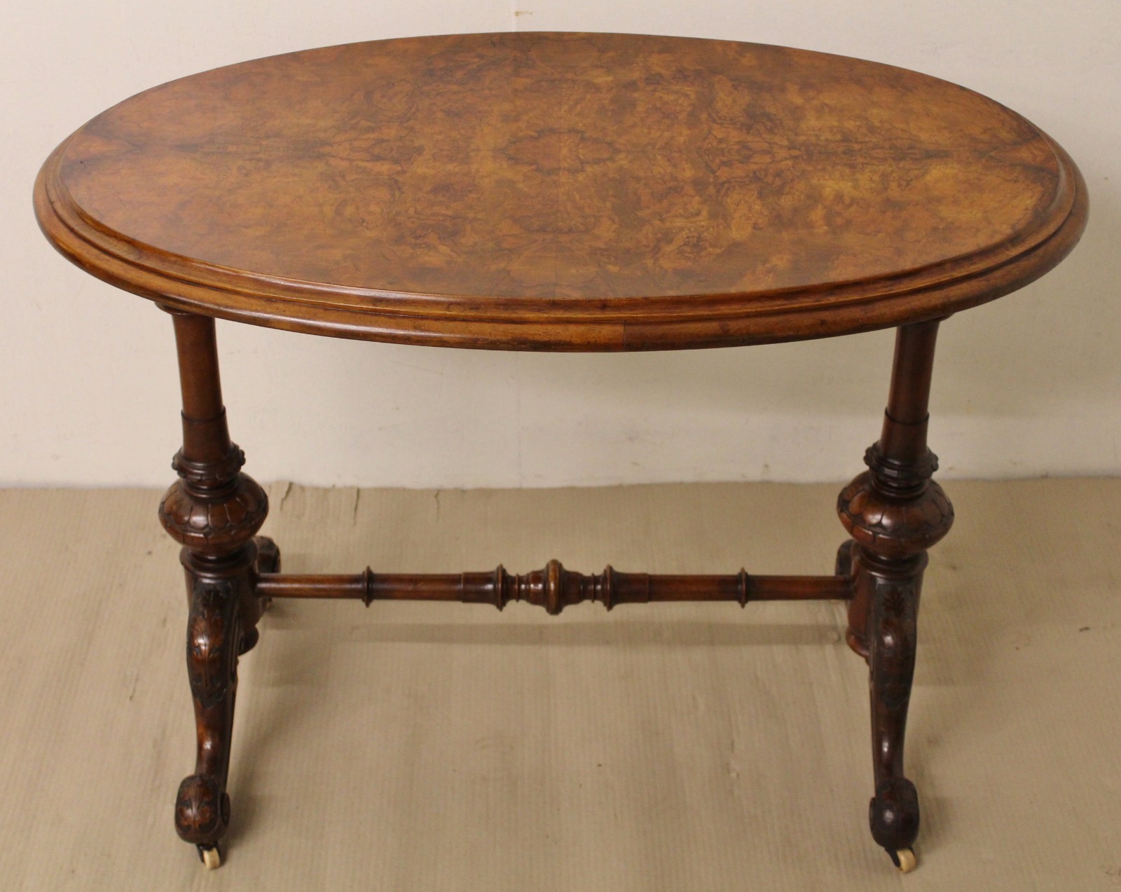 Victorian Burr Walnut Stretcher Table (1 of 1)