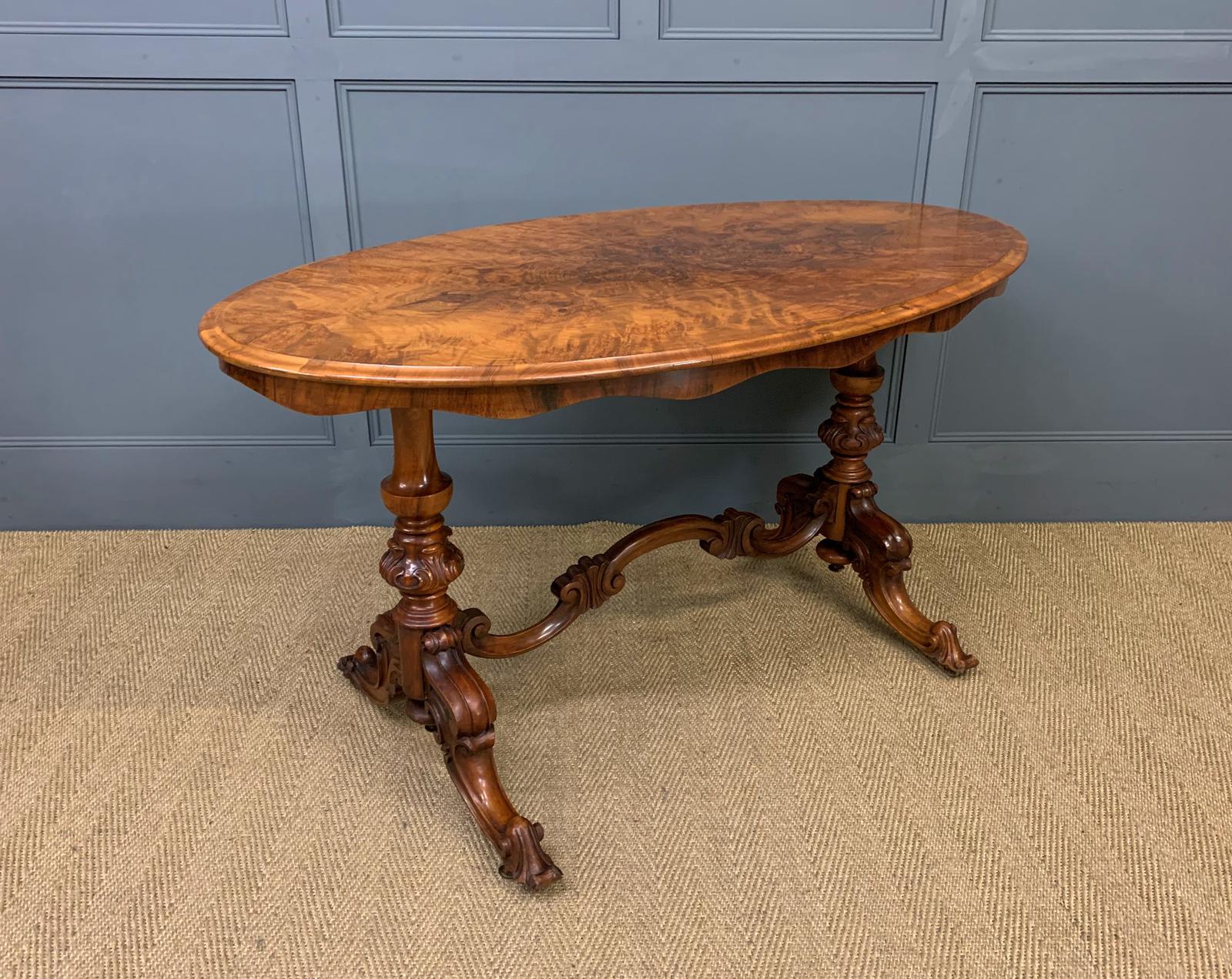 Victorian Burr Walnut Stretcher Table (1 of 13)