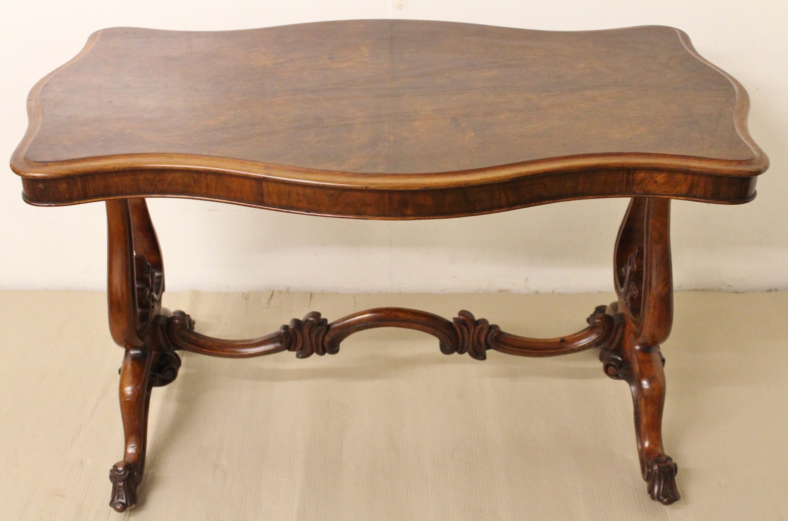 Victorian Burr Walnut Stretcher Table c.1870 (1 of 1)