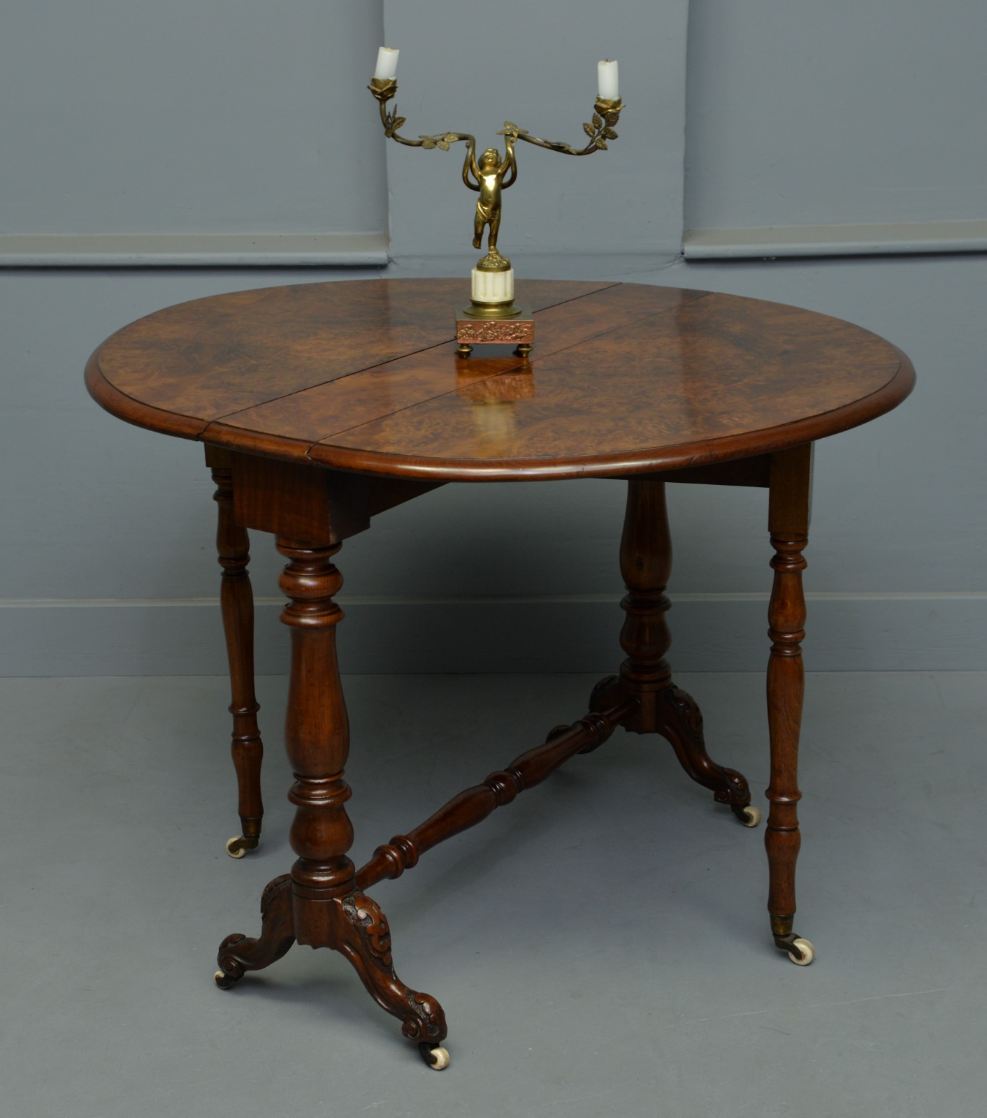 Victorian Burr-Walnut Sutherland / Drop-Leaf Table