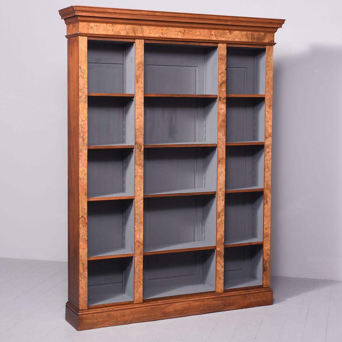 Victorian Burr Walnut Tall Open Bookcase in Pristine Condition