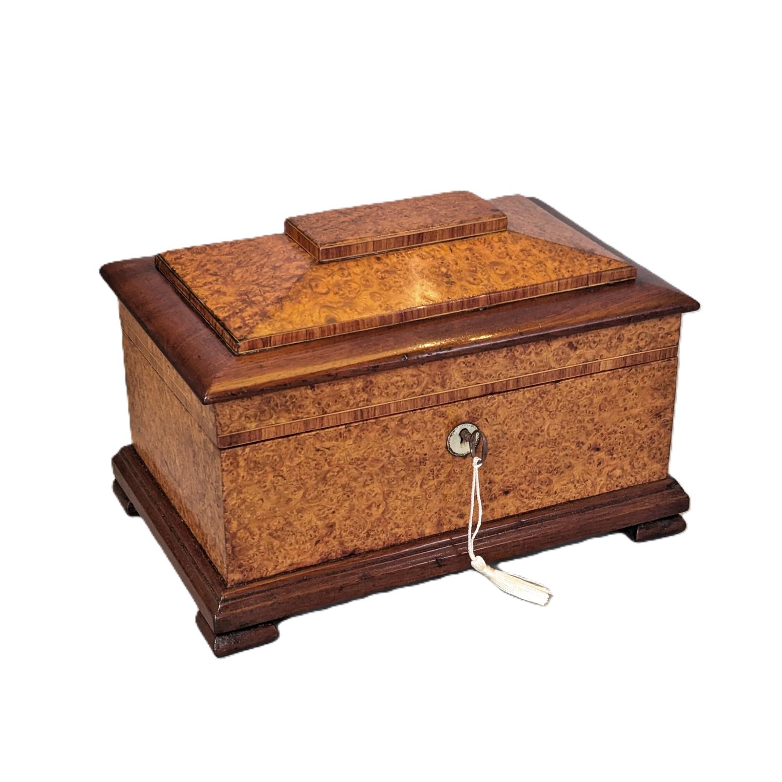 Victorian Burr Walnut Tea Caddy with Secret Dedication
