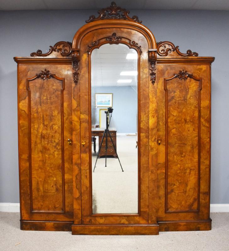 This Victorian Burr Walnut Triple Wardrobe is located in Essex, United Kingdom
