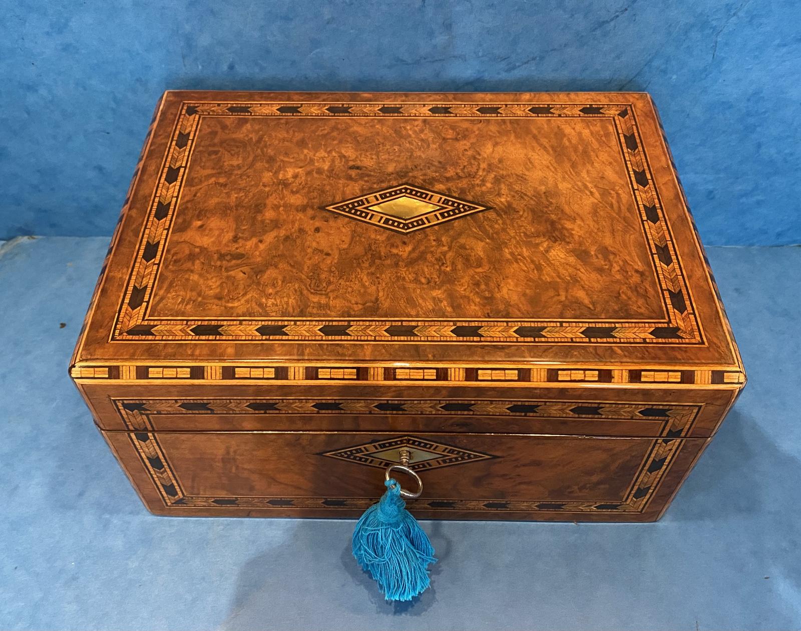 Victorian Burr Walnut & Tunbridge Ware Jewellery Box