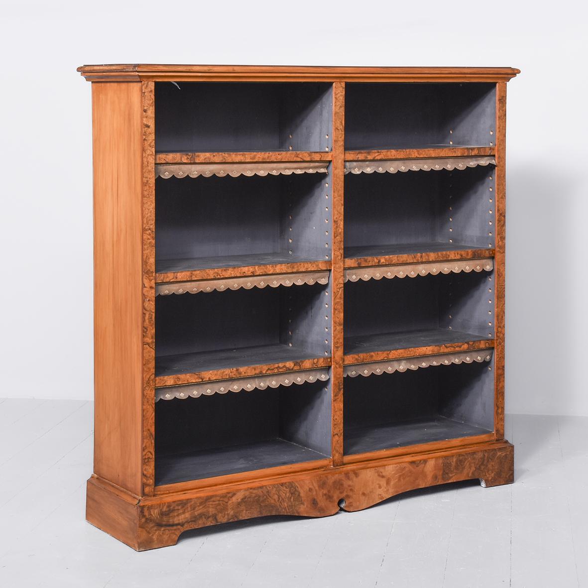 Victorian Burr Walnut Two-part Open Bookcase in Original Condition